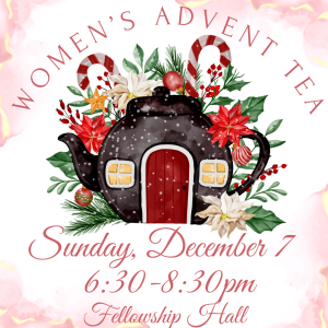 Join us for an evening of light refreshments, fellowship, worship, and encouragement. Come be refreshed and focus on Christ before heading into the busy December season.